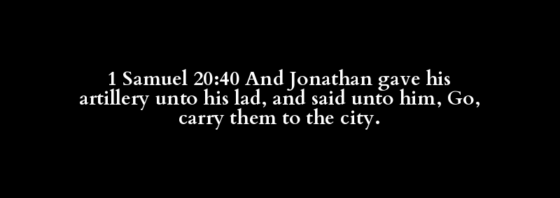 1 Samuel 20:40 And Jonathan gave his artillery unto his lad, and said unto him, Go, carry them to the city.