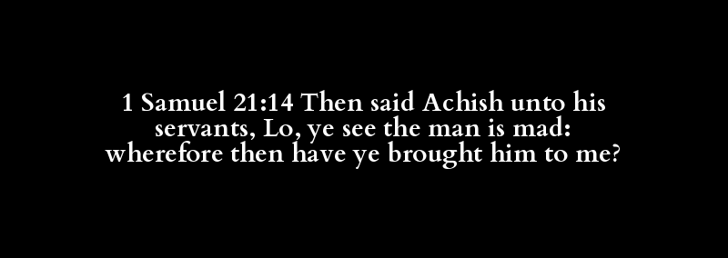 1 Samuel 21:14 Then said Achish unto his servants, Lo, ye see the man is mad: wherefore then have ye brought him to me?