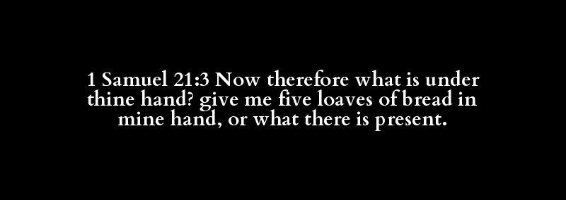 1 Samuel 21:3 Now therefore what is under thine hand? give me five loaves of bread in mine hand, or what there is present.