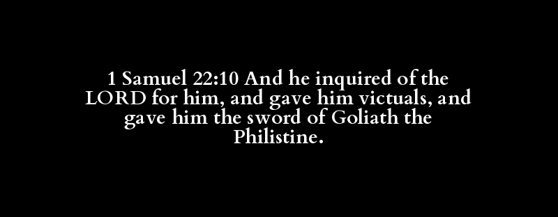 1 Samuel 22:10 And he inquired of the LORD for him, and gave him victuals, and gave him the sword of Goliath the Philistine.