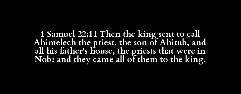 1 Samuel 22:11 Then the king sent to call Ahimelech the priest, the son of Ahitub, and all his father's house, the priests that were in Nob: and they came all of them to the king.