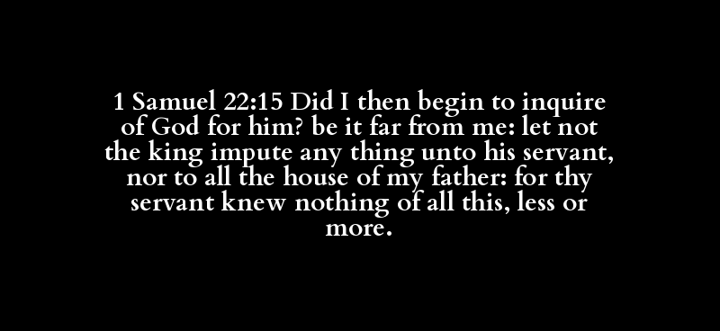 1 Samuel 22:15 Did I then begin to inquire of God for him? be it far from me: let not the king impute any thing unto his servant, nor to all the house of my father: for thy servant knew nothing of all this, less or more.