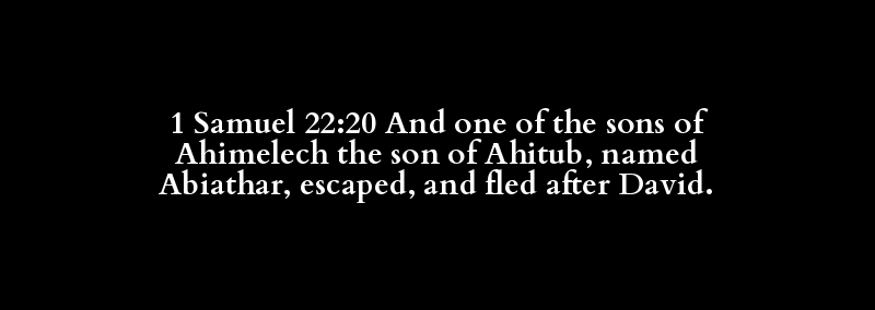 1 Samuel 22:20 And one of the sons of Ahimelech the son of Ahitub, named Abiathar, escaped, and fled after David.