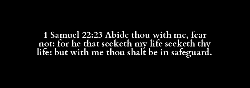 1 Samuel 22:23 Abide thou with me, fear not: for he that seeketh my life seeketh thy life: but with me thou shalt be in safeguard.