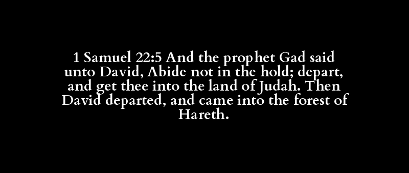 1 Samuel 22:5 And the prophet Gad said unto David, Abide not in the hold; depart, and get thee into the land of Judah. Then David departed, and came into the forest of Hareth.