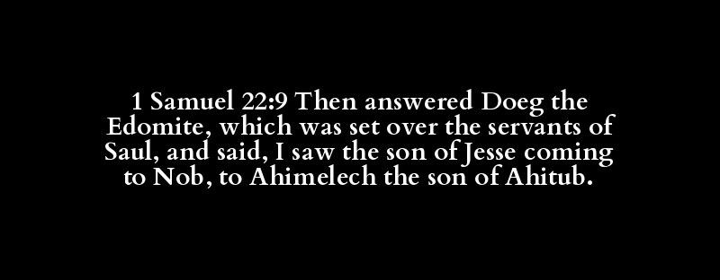 1 Samuel 22:9 Then answered Doeg the Edomite, which was set over the servants of Saul, and said, I saw the son of Jesse coming to Nob, to Ahimelech the son of Ahitub.
