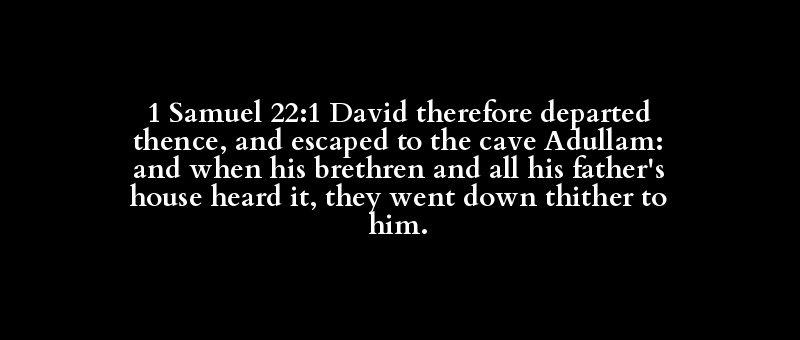 1 Samuel 22:1 David therefore departed thence, and escaped to the cave Adullam: and when his brethren and all his father's house heard it, they went down thither to him.