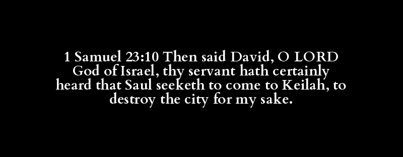 1 Samuel 23:10 Then said David, O LORD God of Israel, thy servant hath certainly heard that Saul seeketh to come to Keilah, to destroy the city for my sake.