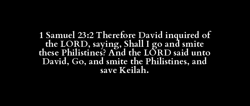 1 Samuel 23:2 Therefore David inquired of the LORD, saying, Shall I go and smite these Philistines? And the LORD said unto David, Go, and smite the Philistines, and save Keilah.