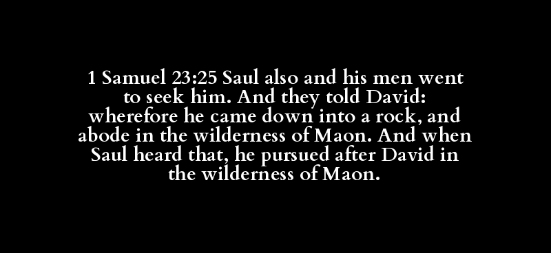 1 Samuel 23:25 Saul also and his men went to seek him. And they told David: wherefore he came down into a rock, and abode in the wilderness of Maon. And when Saul heard that, he pursued after David in the wilderness of Maon.