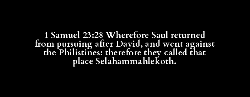 1 Samuel 23:28 Wherefore Saul returned from pursuing after David, and went against the Philistines: therefore they called that place Selahammahlekoth.