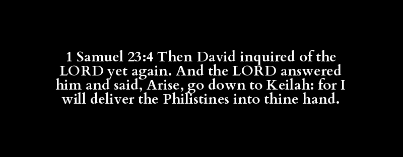 1 Samuel 23:4 Then David inquired of the LORD yet again. And the LORD answered him and said, Arise, go down to Keilah: for I will deliver the Philistines into thine hand.