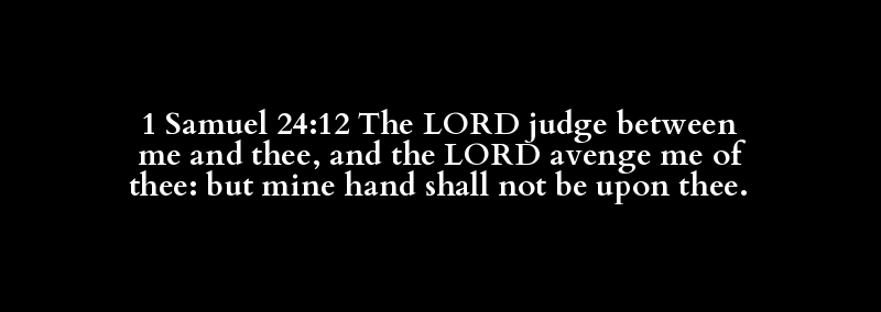 1 Samuel 24:12 The LORD judge between me and thee, and the LORD avenge me of thee: but mine hand shall not be upon thee.
