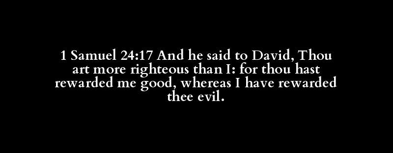 1 Samuel 24:17 And he said to David, Thou art more righteous than I: for thou hast rewarded me good, whereas I have rewarded thee evil.