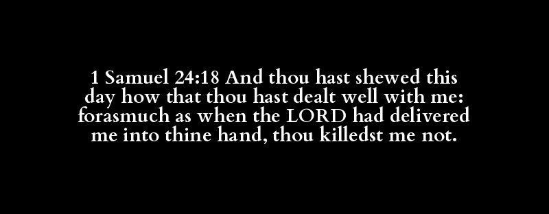 1 Samuel 24:18 And thou hast shewed this day how that thou hast dealt well with me: forasmuch as when the LORD had delivered me into thine hand, thou killedst me not.