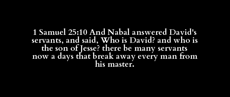 1 Samuel 25:10 And Nabal answered David's servants, and said, Who is David? and who is the son of Jesse? there be many servants now a days that break away every man from his master.