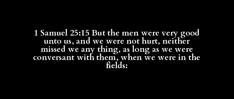 1 Samuel 25:15 But the men were very good unto us, and we were not hurt, neither missed we any thing, as long as we were conversant with them, when we were in the fields:
