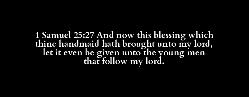 1 Samuel 25:27 And now this blessing which thine handmaid hath brought unto my lord, let it even be given unto the young men that follow my lord.
