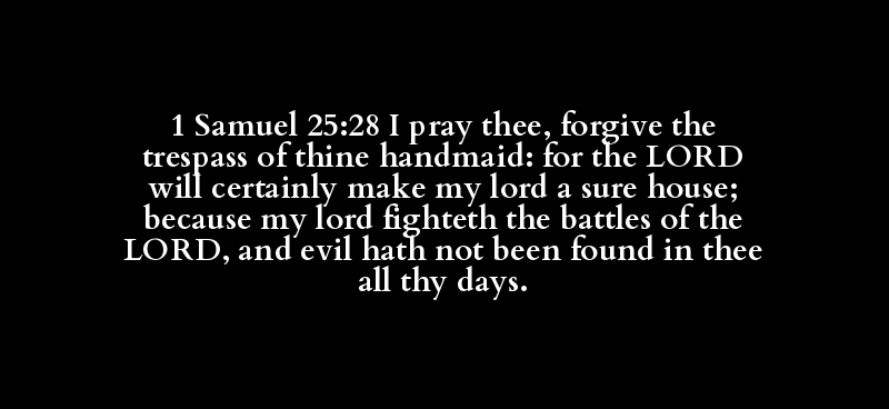 1 Samuel 25:28 I pray thee, forgive the trespass of thine handmaid: for the LORD will certainly make my lord a sure house; because my lord fighteth the battles of the LORD, and evil hath not been found in thee all thy days.