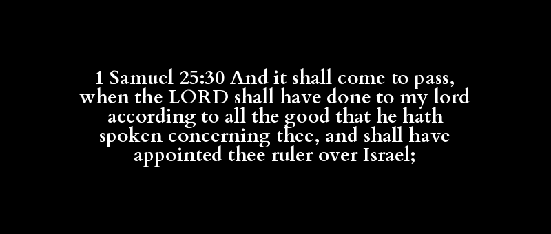 1 Samuel 25:30 And it shall come to pass, when the LORD shall have done to my lord according to all the good that he hath spoken concerning thee, and shall have appointed thee ruler over Israel;