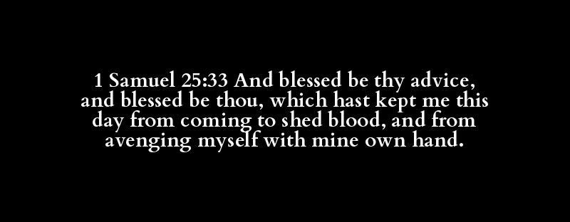 1 Samuel 25:33 And blessed be thy advice, and blessed be thou, which hast kept me this day from coming to shed blood, and from avenging myself with mine own hand.