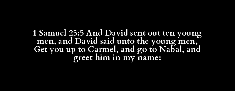 1 Samuel 25:5 And David sent out ten young men, and David said unto the young men, Get you up to Carmel, and go to Nabal, and greet him in my name: