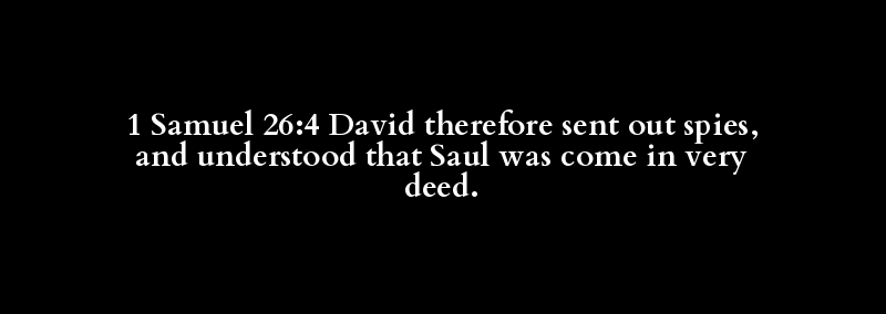 1 Samuel 26:4 David therefore sent out spies, and understood that Saul was come in very deed.