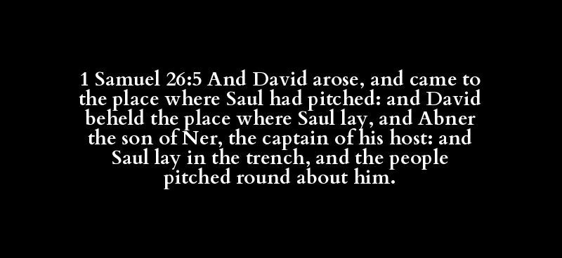 1 Samuel 26:5 And David arose, and came to the place where Saul had pitched: and David beheld the place where Saul lay, and Abner the son of Ner, the captain of his host: and Saul lay in the trench, and the people pitched round about him.