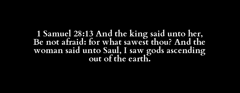 1 Samuel 28:13 And the king said unto her, Be not afraid: for what sawest thou? And the woman said unto Saul, I saw gods ascending out of the earth.