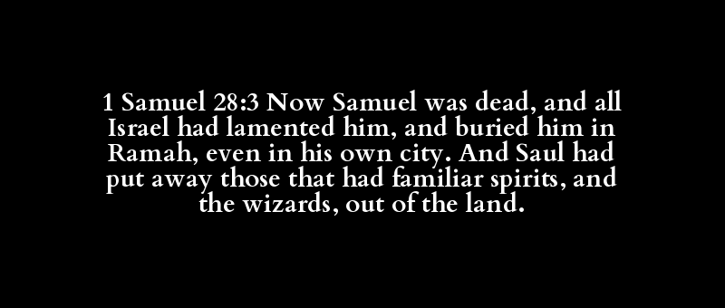 1 Samuel 28:3 Now Samuel was dead, and all Israel had lamented him, and buried him in Ramah, even in his own city. And Saul had put away those that had familiar spirits, and the wizards, out of the land.