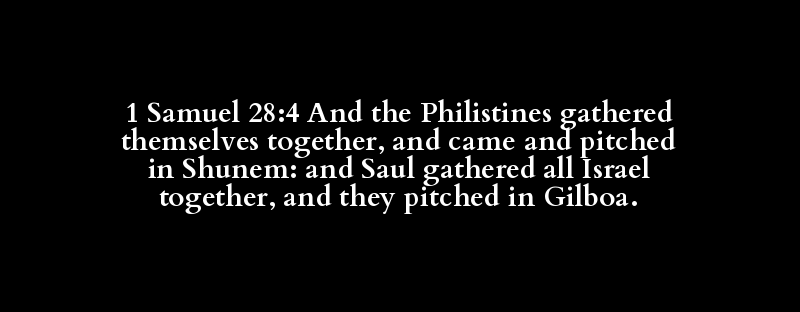 1 Samuel 28:4 And the Philistines gathered themselves together, and came and pitched in Shunem: and Saul gathered all Israel together, and they pitched in Gilboa.