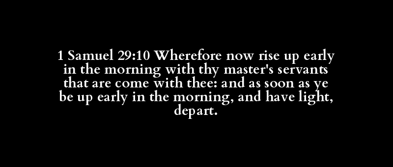 1 Samuel 29:10 Wherefore now rise up early in the morning with thy master's servants that are come with thee: and as soon as ye be up early in the morning, and have light, depart.
