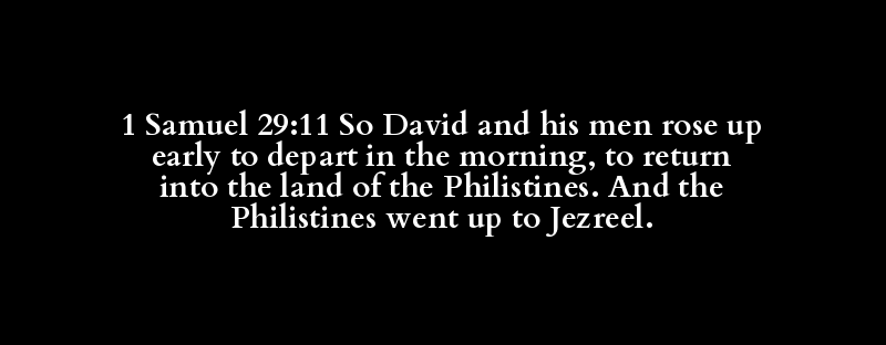 1 Samuel 29:11 So David and his men rose up early to depart in the morning, to return into the land of the Philistines. And the Philistines went up to Jezreel.