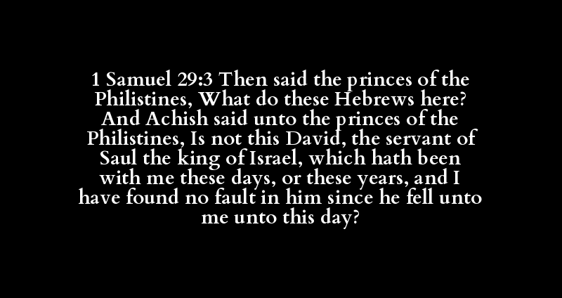 1 Samuel 29:3 Then said the princes of the Philistines, What do these Hebrews here? And Achish said unto the princes of the Philistines, Is not this David, the servant of Saul the king of Israel, which hath been with me these days, or these years, and I have found no fault in him since he fell unto me unto this day?