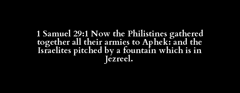 1 Samuel 29:1 Now the Philistines gathered together all their armies to Aphek: and the Israelites pitched by a fountain which is in Jezreel.