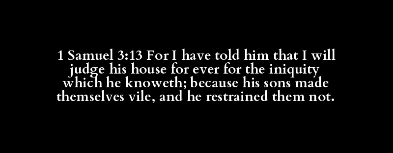 1 Samuel 3:13 For I have told him that I will judge his house for ever for the iniquity which he knoweth; because his sons made themselves vile, and he restrained them not.