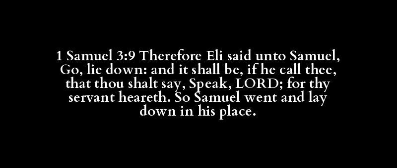 1 Samuel 3:9 Therefore Eli said unto Samuel, Go, lie down: and it shall be, if he call thee, that thou shalt say, Speak, LORD; for thy servant heareth. So Samuel went and lay down in his place.
