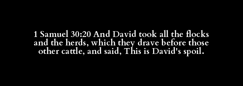 1 Samuel 30:20 And David took all the flocks and the herds, which they drave before those other cattle, and said, This is David's spoil.