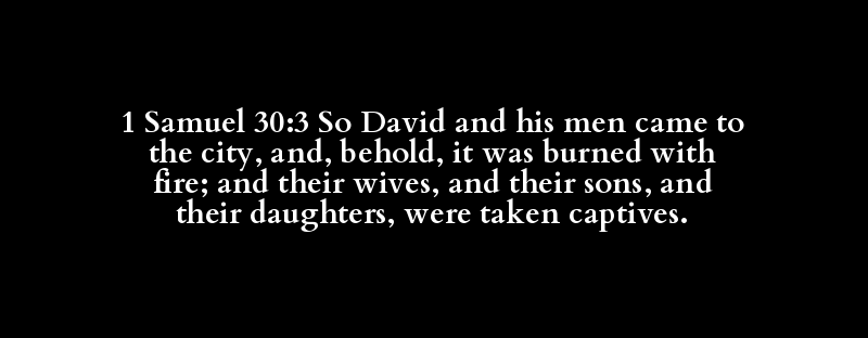1 Samuel 30:3 So David and his men came to the city, and, behold, it was burned with fire; and their wives, and their sons, and their daughters, were taken captives.