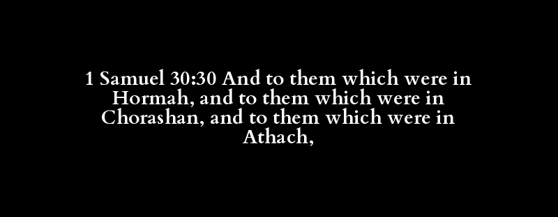 1 Samuel30:30 From Original Authorized King James Version1 Samuel 30:30 And to them which were in Hormah, and to them which were in Chorashan, and to them which were in Athach,