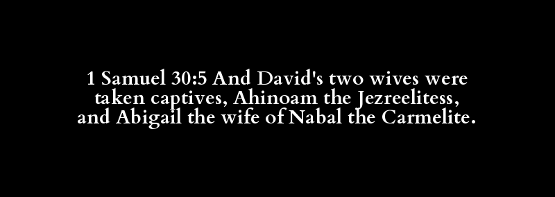 1 Samuel 30:5 And David's two wives were taken captives, Ahinoam the Jezreelitess, and Abigail the wife of Nabal the Carmelite.
