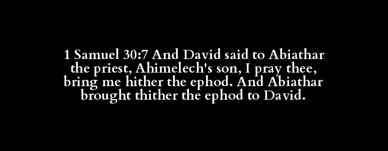 1 Samuel 30:7 And David said to Abiathar the priest, Ahimelech's son, I pray thee, bring me hither the ephod. And Abiathar brought thither the ephod to David.