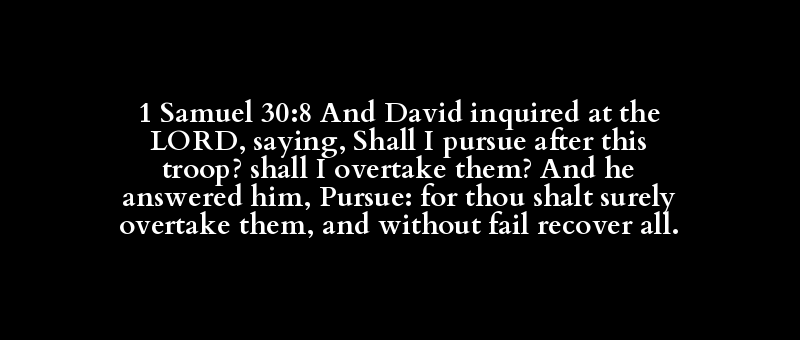 1 Samuel 30:8 And David inquired at the LORD, saying, Shall I pursue after this troop? shall I overtake them? And he answered him, Pursue: for thou shalt surely overtake them, and without fail recover all.