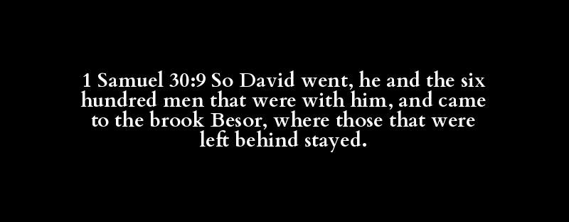 1 Samuel 30:9 So David went, he and the six hundred men that were with him, and came to the brook Besor, where those that were left behind stayed.