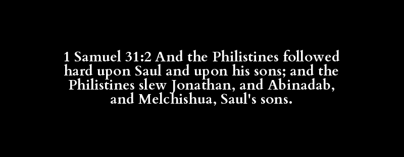 1 Samuel 31:2 And the Philistines followed hard upon Saul and upon his sons; and the Philistines slew Jonathan, and Abinadab, and Melchishua, Saul's sons.
