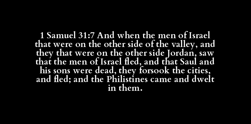 1 Samuel 31:7 And when the men of Israel that were on the other side of the valley, and they that were on the other side Jordan, saw that the men of Israel fled, and that Saul and his sons were dead, they forsook the cities, and fled; and the Philistines came and dwelt in them.
