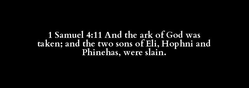 1 Samuel 4:11 And the ark of God was taken; and the two sons of Eli, Hophni and Phinehas, were slain.