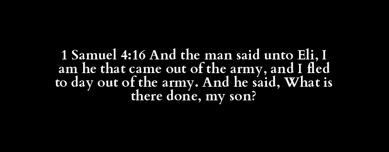 1 Samuel 4:16 And the man said unto Eli, I am he that came out of the army, and I fled to day out of the army. And he said, What is there done, my son?