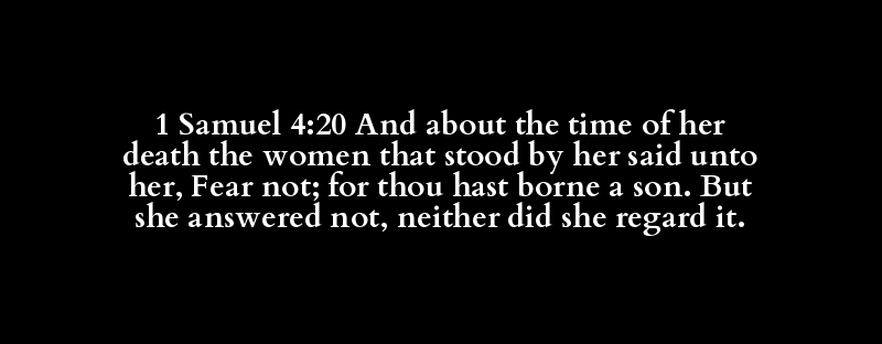 1 Samuel 4:20 And about the time of her death the women that stood by her said unto her, Fear not; for thou hast borne a son. But she answered not, neither did she regard it.
