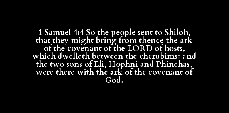 1 Samuel 4:4 So the people sent to Shiloh, that they might bring from thence the ark of the covenant of the LORD of hosts, which dwelleth between the cherubims: and the two sons of Eli, Hophni and Phinehas, were there with the ark of the covenant of God.